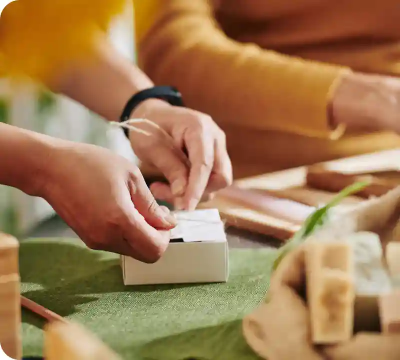 漢方の小袋詰めやラベル貼り作業。集中して取り組める環境です。